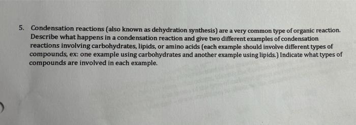 Solved 5 Condensation Reactions Also Known As Dehydration Chegg Com